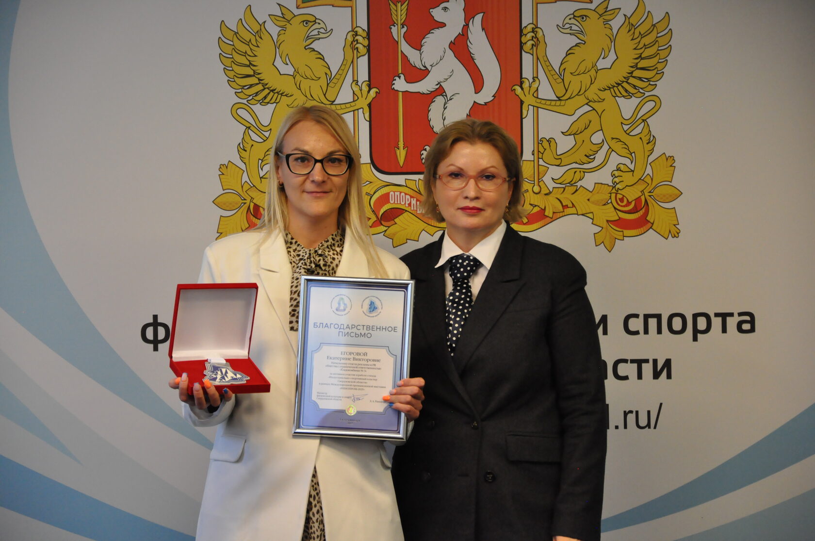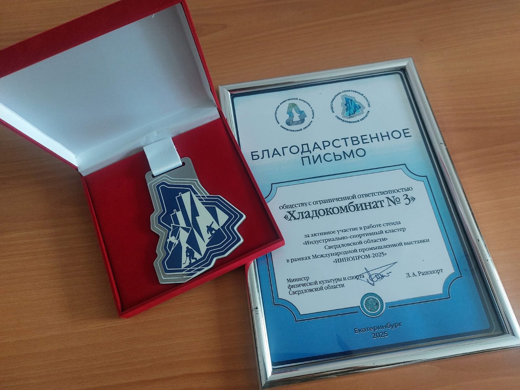 10 сентября, на торжественной встрече в Министерстве физической культуры и спорта Свердловской области были вручены Благодарственные письма и памятные медали предприятиям за активную поддержку спорта, а также за участие в ИННОПРОМе. Вручение проводила заместитель министра Белоножкина Ольга Игоревна, которая с восхищением и трепетом высказывалась о проделанной работе, прошедших и предстоящих проектах.